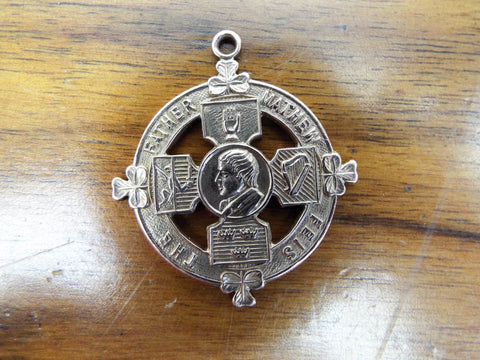 1925 Vintage 9ct Gold Religious Father Mathew Feis Badge Pendant Medal