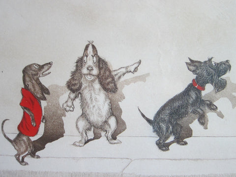1930's signed Boris O Klein Canine Hand Colored Print - 'Le Malentendu'