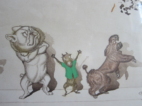 A great piece of collective signed art in excellent condition ready to hang, this would suit any dog collectors or French humorist artists living room, bedroom or library.
