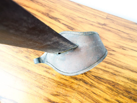 In good condition considering age and use. The metal shows signs of age and has not been cleaned . The guard has a small split on one side of the reinforcing edge (please see all pictures as they form part of the condition description).