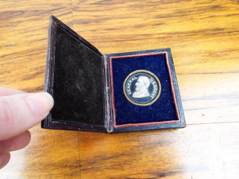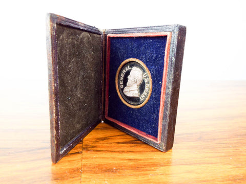 Antique Civil War Era US Grant Thermoplastic Presidential Token Leather Case