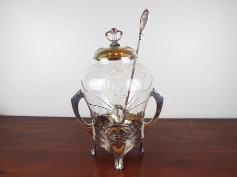 Antique Jugendstil Covered Punch Bowl W Ladle Kayser German Art Nouveau 1900