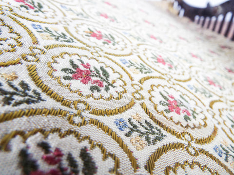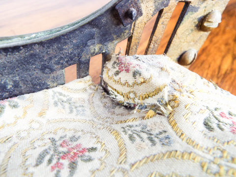 This bookstand is in good physical condition considering age and use and has been well looked after. There is a little tethering to the floral material used on the stand (please see all pictures as they form part of the condition description).