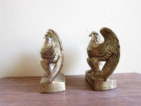 Vintage Gold Eagle Statue Bookends by PMC Craftsman Company