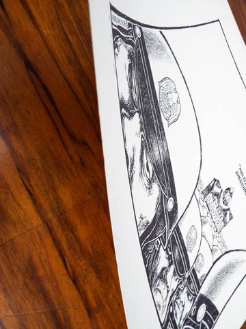 Print measures 17.25" tall by 17.25" wide (image itself is about 14" by 14") and weighs 6.8oz.
