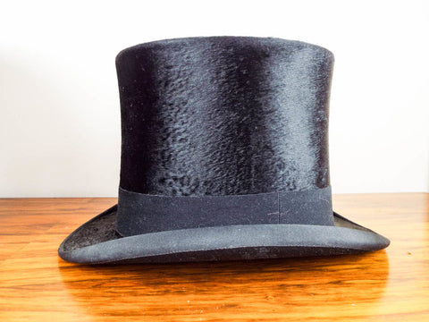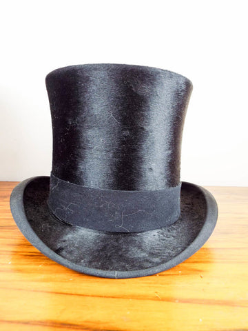This antique top hat measures as a 6 and 5/8ths (21" inside circumference) - small