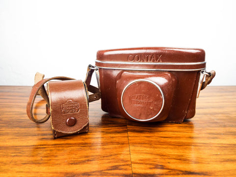 Bundle includes: Zeiss Ikon Contax IIa camera, original leather contax case, Zeiss Opton Sonnar lens 1:2 f=50mm, Tiffen skylight series VI filter and leather case.