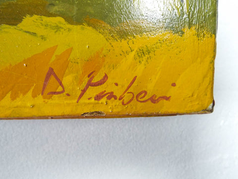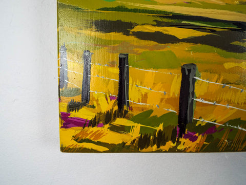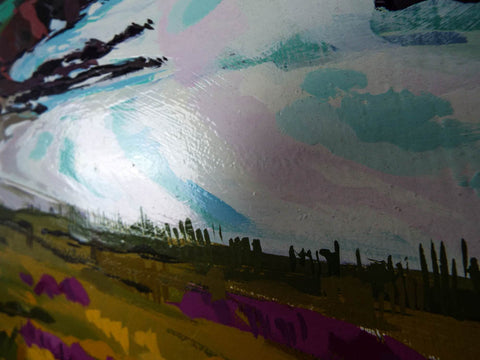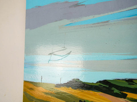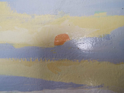 This painting is good condition. There is a scratch to the acrylic paint on the center far lefthand side near the edge (please see all pictures as they form part of the condition description).