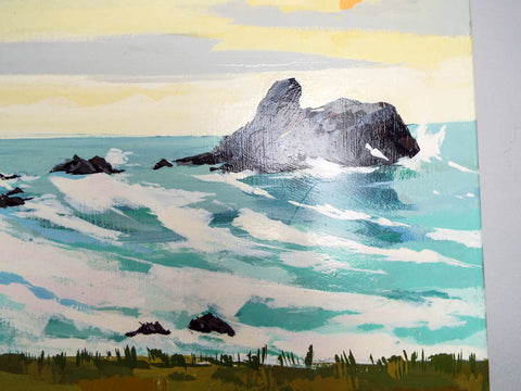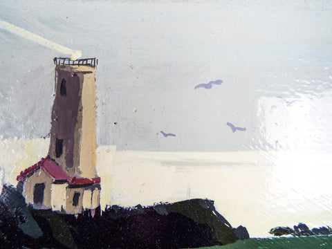 Vintage Large Signed Landscape Acrylic Painting Seascape on Board Lighthouse 56"