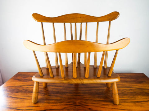 Vintage solid maple wood American country style magazine rack made by R Veal & son out of Albany Oregon.