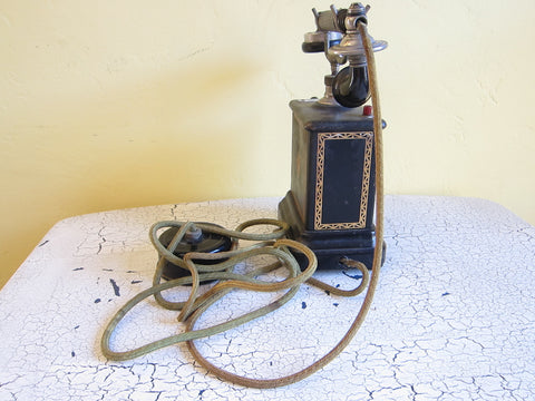 The antique phone is untested, but appears to be intact. This is an aesthetically stunning early piece of technology which even though was pre dial was very avant grade for its time.